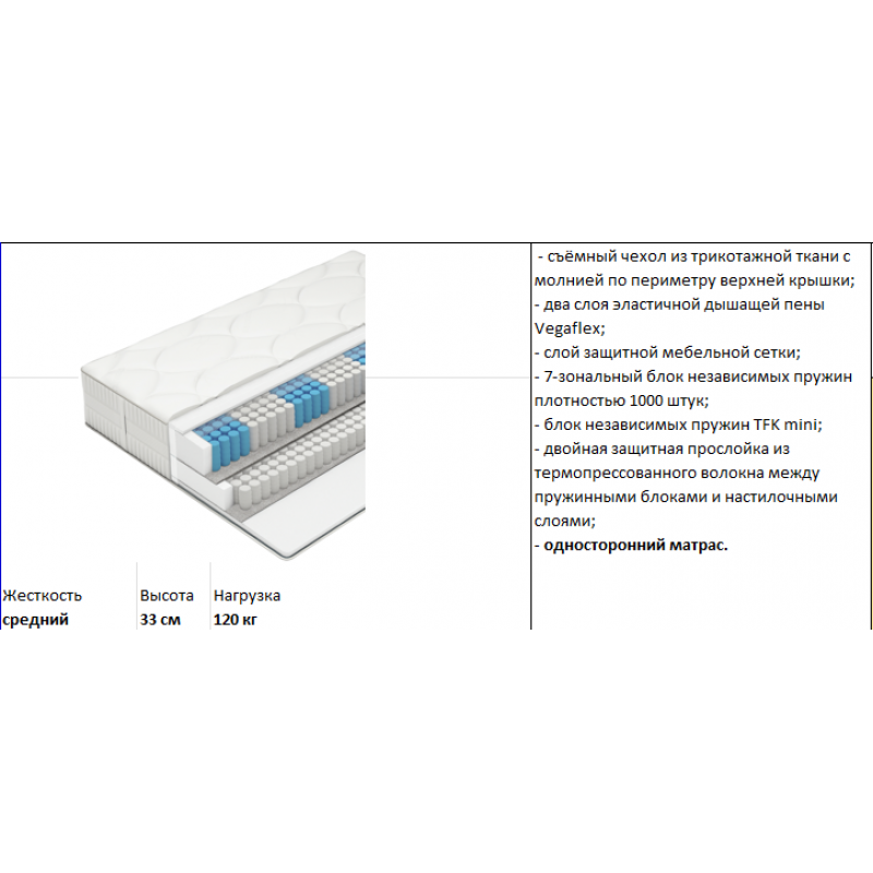 - 7-зональный блок независимых пружин плотностью 1000 штук;